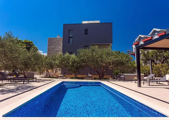 Fornecendo casino, parque aquático e solário, Villa Topaz à beira-mar está localizado a 4.3 km de Cetina - Lower Flow. É composta por 5 quartos, cozinha e 6 casas de banho.